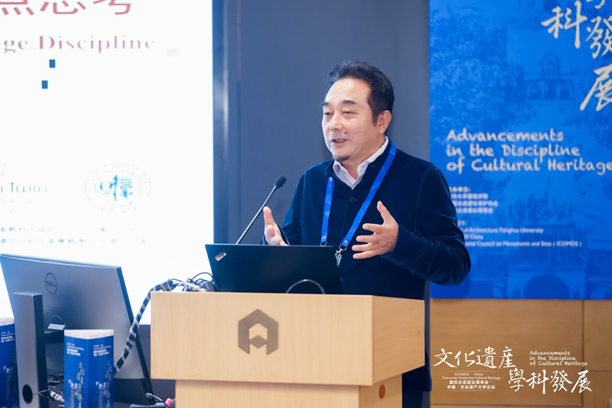 西安建筑科技大学建筑学院院长雷振东教授以“渊源·学研·知行·传承·未来——文化遗产保护学科建设中的西建大力量”为题,以大明宫遗址公园的建设和申遗过程为例,回顾了西安建筑科技大学与ICOMOS的深厚渊源,介绍了西安建筑科技大学文化遗产学科的教研理路、实践经验、人才培养体系,对学科未来进行展望,表示应开展文化遗产保护领域交叉研究,开拓学术前沿,深耕地域文化,构建文化遗产学科链群与体系。