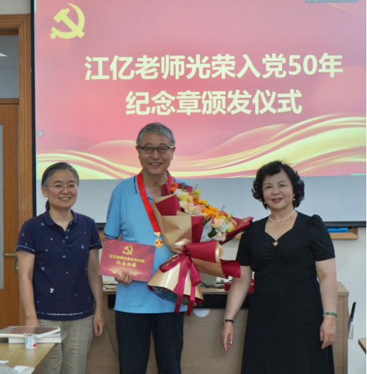 2024年6月6日下午,建筑学院建环党支部在旧土木馆召开支部组织生活会并举办庆祝江亿院士“光荣在党50年”专题活动。在建环党支部书记王馨老师的主持下,朱颖心教授代表建筑学院党委书记张悦教授向江亿院士颁发“光荣在党50年”纪念章,感谢他长期以来为行业和社会做出的卓越贡献。江亿老师坚守初心、献身科学教育事业的精神激励了一代代年轻党员拼搏奉献、接续奋斗,为我国节能低碳事业贡献力量。