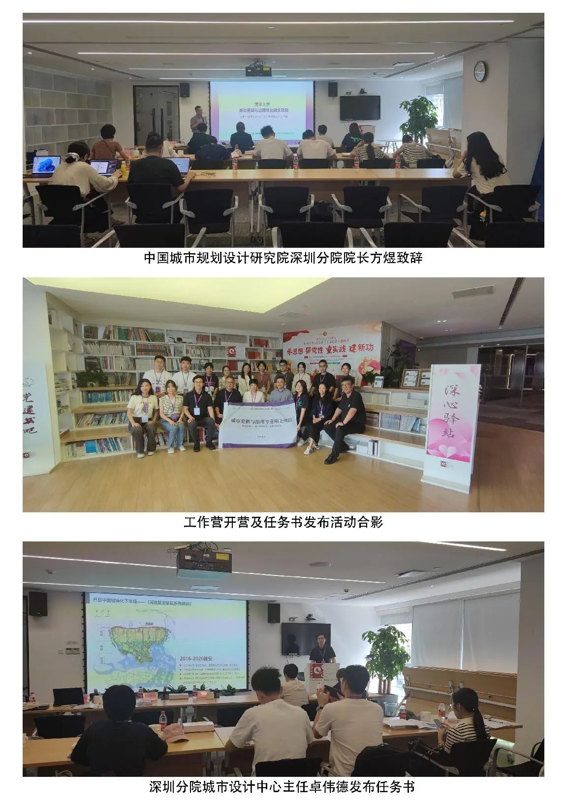 9月11日上午,清华大学城市更新与治理专业硕士项目光明科学城茅洲河中央水岸城市设计工作营开营及任务书发布仪式在中国城市规划设计研究院深圳分院启动。中国城市规划设计研究院深圳分院院长方煜,副院长王泽坚,城市设计中心主任卓伟德,规划一所副所长龚志渊,清华大学建筑学院副教授陈宇琳,专业学位中心王宇佳出席活动,7位来自建筑学院建筑、规划专业的硕士研究生同学参加。期间,同学们参观中规院深圳分院,聆听光明科学城、泉州海丝新城等代表性项目分享。