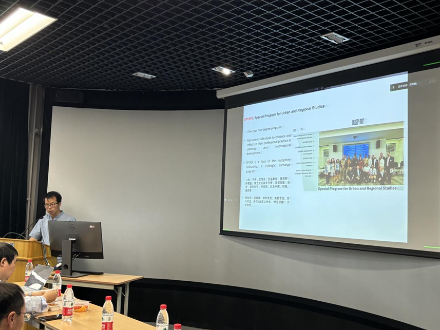 周政旭向参会师生们介绍了自己在MIT参与的Special Program for Urban and Regional Studies (SPURS)项目的整体概况,SPURS是一个针对城市和区域研究的非学位特别项目,由全球从业人员和行业人士共同参与以构建交流思想、经验和做法的网络。此次项目的成员来自亚洲、非洲和南美洲的各个国家,职业类型包括律师、规划师、建筑师、政府和国际组织官员、高校教授等。